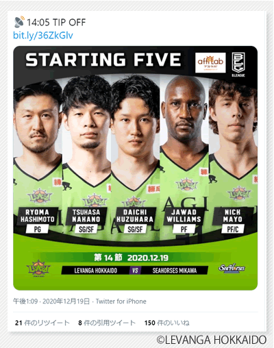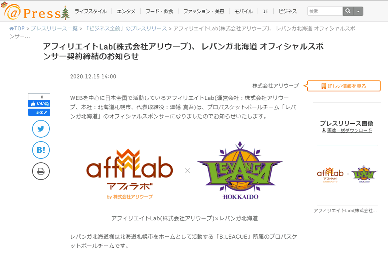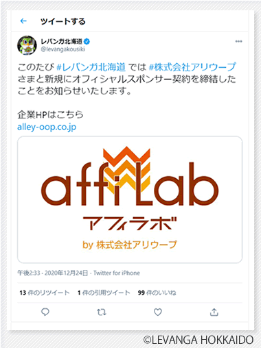 プロバスケットボールチーム「レバンガ北海道」オフィシャルスポンサー契約締結(2020年12月15日)